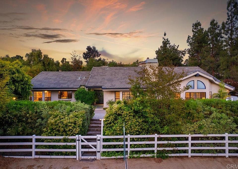 Welcome home to this Proctor Valley Estates acre of paradise, perfectly perched to soak up sunsets over the mountains and framed by mature, majestic pines in the back with a long meadow of fruit trees at the entrance below. Almost fully remodeled six years ago, your eyes will dance with delight as you step through the double doors of this single-level, 3-bedroom, plus office, 4-bath luxury home in the country. As you enter, you are greeted on the right by the airy living room under soaring, vaulted ceilings while a second living space (yay!) awaits you off the kitchen and dining room to the left. This fabulous floor plan places the enormous master bedroom, with its own fireplace, huge walk-in closet and extra-spacious, elegant ensuite bathroom at the far end of this 3,294 sf entertainer's dream home. Master bath includes a large walk-in shower and soaking tub! This uniquely beautiful, very private, residence boasts a coastal vibe and offers so many coveted features! Installed just six years ago are: new plumbing & electrical, new roof, new flooring, complete remodels of master bedroom, living room and two of the remaining three bathrooms. Also, a 2022 concrete driveway replacement with drains, media closet, CAT 5 wiring throughout the home, huge walkable attic, tons of storage with closet organizers, and Rheem energy-efficient dual AC with all-new ducting! Outside, the palm-tree-lined sand volleyball court invites you for fun in the front while, in the back, a sprawling back patio and large, private backyard greet you with outdoor speakers just waiting for weekend celebrations! The built-in barbecue and large outdoor island with mini-fridge are right off the kitchen for ease of entertaining. This entire, fully-fenced, property with 3-car garage is an incredible oasis in the country yet only five miles to everything you need right there in Rancho San Diego... come escape and enjoy the wonder of it all. Location, location, location AND value, value, value!!!