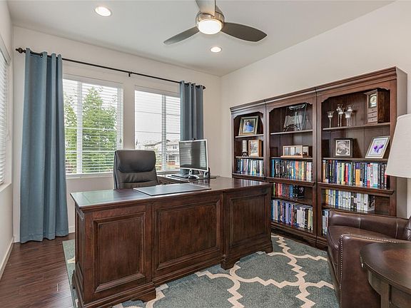 This stunning home offers 4 Bedrooms + Loft, and 3 Bathrooms. Main level has spacious open floor plan, private Study (which can be a 5th non-conforming bedroom), large family Room with gas fireplace, oversized dining Room, and gorgeous high-end kitchen. Kitchen features granite slab counter tops with custom decorative-stone tile back splash, stainless-steel appliances and huge center island with storage and breakfast-bar. Laundry Room is conveniently located upstairs by all the bedrooms! Large master suite features a private 4-piece bathroom and great walk-in closet. Large loft is perfect for TV room, craft room, kids play area. Gorgeous private beautifully landscaped backyard with a large patio for all your family and entertaining needs. Solar panels that are paid for!!! Let Excel pay you!! Great community pool and parks. Close to everything. This home has been well-cared for and maintained demonstrating a strong pride in ownership! Come and see it today!