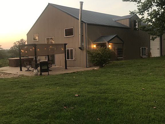 100 acres with Wet Glaize frontage only 22 minutes from Camdenton on A Road and 23 minutes from Osage Beach via Hwy 42 near C and A junction--Paved roads all the way. Lodge home with magnificent interior overlooking the Wet Glaize Creek valley. 2,700 sq. ft. pole barn with 15' sidewalls and 2 overhead doors. Lots of fish, game, bottom land, and history. Water access points all around property which has approximately Wet Glaize frontage 3,815'. Hunting lodge extraordinaire or peaceful private country estate!