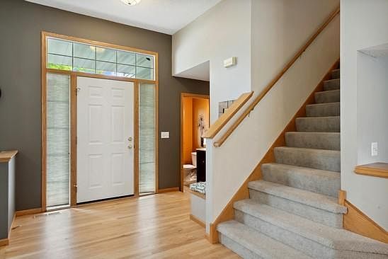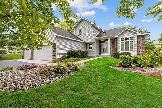 Lovely 4 Bedroom, 3 Bath, 3 Car Modified Two Story! Spacious foyer steps down to cozy front living room with large picture window! Hardwood flrs lead to open dining & kitchen w/SS appl, granite counters & Island & handy corner pantry . Sliding glass door from dining walks out to west facing sizable deck & fully fenced yard! Great for BBQ's & entertaining! Convenient main lvl BR/office/playroom & powder room. Step down to Family room complete w/built-In's & gas fplc. Great for movie nights! Upper lvl features 3 spacious BR's incl exceptional owner’s suite with detail ceiling, a walk-in closet & full BA with relaxing soaker tub & separate walk-in shower. Add'l full bathroom completes this lvl. Full unfinished lower lvl! 6 panel doors! Walkability to shopping, restaurants, Prior Lake, Parks, Walking Trails! Furnace&A/C new in 2020. New MaintFrDecking, Driveway apron, Carpet & Hdwd Floor refinish in 2022. You can have it all in this lovely well maintained home with all conveniences nearby!