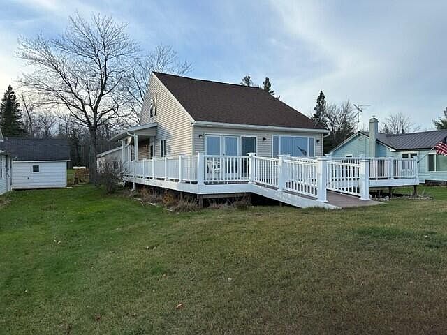Charlotte Beach waterfront home. Newer exterior and detached two car garage, nice decks and landscaping. Main bedroom suite on lower level, two addtional bedrooms upstairs. Interior mostly original.