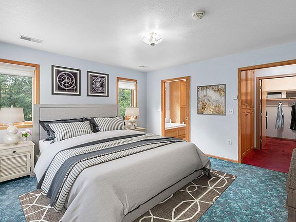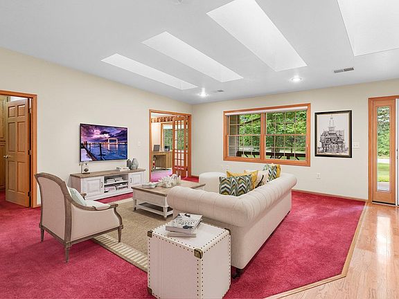 Welcome to 13878 Bistram Road Grantsburg! This remarkable property, on the market for the first time since its 2000 construction, is a gem. Situated on a picturesque and private 10-acre wooded lot, this stunning home offers tranquility and natural beauty in abundance. Step inside to discover a spacious layout featuring 3BR/2BA, all on one level. Skylights in the living room flood the space with natural light, creating an inviting atmosphere. The family room boasts a vaulted knotty pine ceiling with rustic charm and cozy fireplace perfect for winter nights. The sunroom offers a serene spot to unwind and enjoy the surrounding views. The master bedroom is a retreat with a walk-in closet and an en suite bathroom. The property also features a huge heated and insulated attached garage over 1200 square feet. Recent updates: new roof in 2022 & new air conditioning system added in 2021! This exceptional property is a must-see, offering a unique blend of privacy & natural beauty!