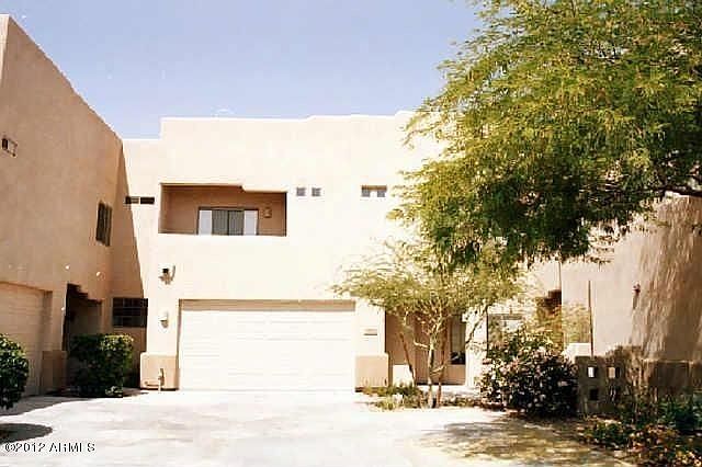 Beautifully Remodeled Townhome, 2 bedrooms, 2.5 bath with an attached 2 car garage with built-in cabinets and storage area in a fantastic Scottsdale location! Stunning wide plank hardwood/laminate flooring in the living/dining/kitchen area. Living room has high ceilings with large windows, including a modern surround gas fireplace. Kitchen has brand new granite counter tops with all Maytag Stainless Steel Appliances and freshly painted cabinets. All new plumbing fixtures, lighting and flooring in the entire home! Vessel sinks with modern faucets in the Master and Guest bath with Carrera Marble Countertops. A beautiful back Private Patio and 2 additional upstairs patios with fantastic views makes this a perfect townhome!
