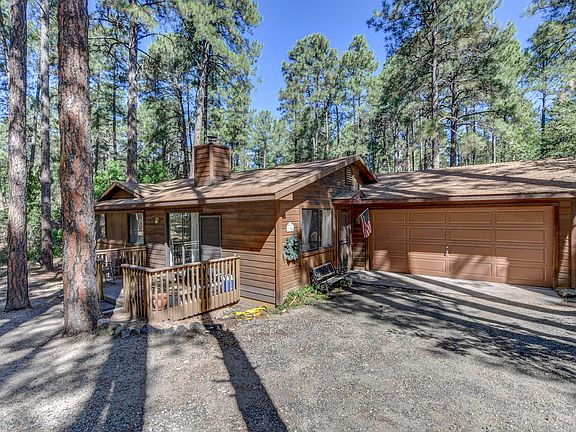 Rare single level cabin with 2 car garage attached! Sweet pine living with usable lot. Paved roads to property. Well maintained cedar sided Groom Creek home awaiting new family!