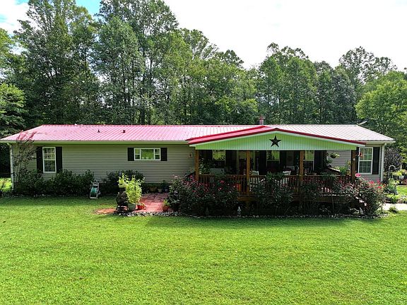 This charming 3-bedroom, 2-bath doublewide home sits on 4.28 acres of beautifully landscaped grounds, offering a perfect blend of privacy and comfort. The open floor plan includes a spacious living room, dining area, and kitchen, ideal for family living and entertaining. The master suite features a large walk-in closet and a private bath, while two additional bedrooms, a full bath, and a laundry room complete the interior. Enjoy your morning coffee or a good book on the inviting front porch, where you can take in the sights and sounds of nature. The back deck provides a perfect spot for outdoor dining and relaxation, overlooking a well-maintained garden area.