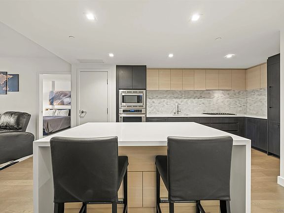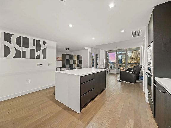 Experience urban living at its finest in Residence 2005, a modern 2 BR/2 BA residence at Savina, Downtown San Diego's newest luxury tower! This desirable split floorplan offers an open concept kitchen w/ large island, dedicated dining room, ample natural light throughout, a spacious primary suite equipped with black out shades & more! Enjoy watching planes fly in along dramatic city skyline views, or enjoy the sunset with peek Bay views from the spacious yet private balcony — perfect for relaxing. Ideally located between the Waterfront and vibrant Little Italy, Savina boasts over 24,000 SF hotel inspired amenities such as a resort-style pool/spa, a massive state-of-the-art gym, Google Fiber Webpass internet included in HOA dues, 24hr security & front desk staff, EV charging stations, and even a pet retreat for late night walks. This is your opportunity to secure the best value in Savina and embrace high-rise living like never before!