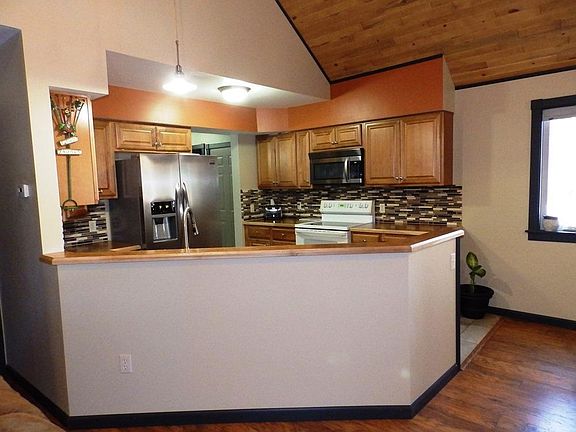 Amazing high-end and maintenance free exterior with new cement board siding, beautiful stacked stone accents, and a standing seam steel roof new in 2014. 3 bedroom 2.5 bath Michaywé home on a terrific wooded lot with main level master suite and laundry. Brand new kitchen: cabinets, counters, and fixtures and flooring. New baths: cabinets, counters, fixtures and flooring. New windows, doors and trim, new carpet and flooring, with fresh paint inside and out. All this and energy efficient natural gas heat. Beautifully remodeled, this home is move-in ready.