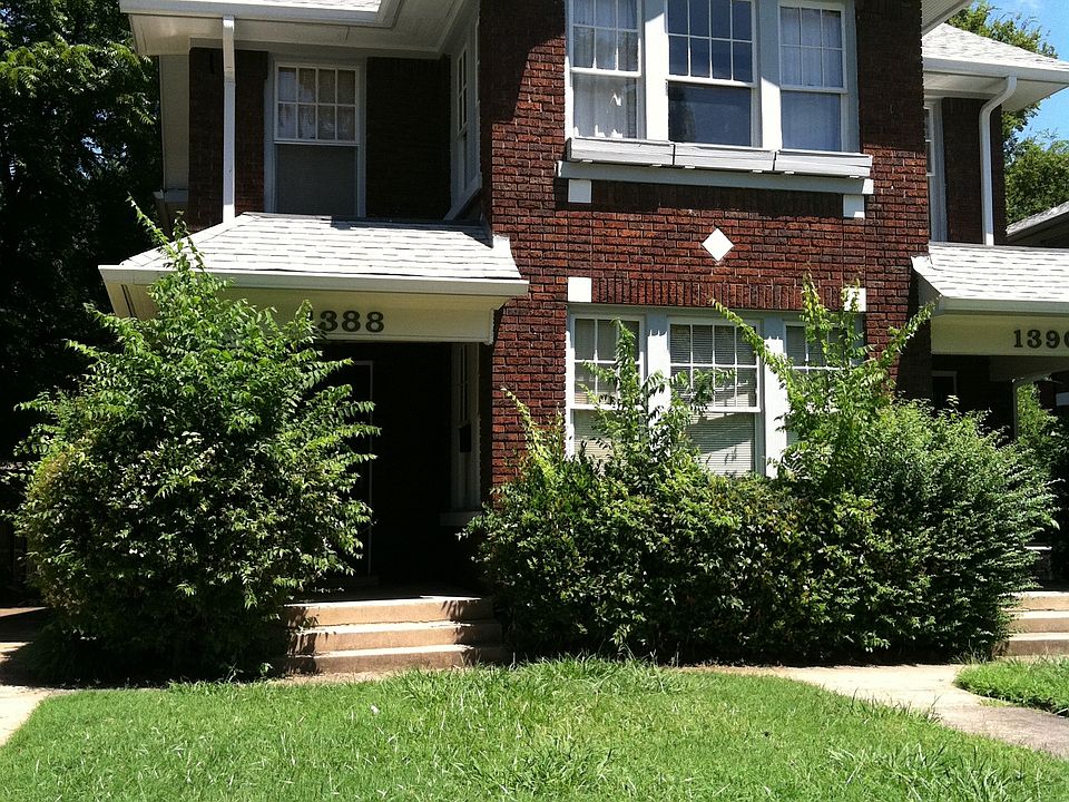 This is the downstairs unit of a midtown duplex. Two bedroom/one bath, small sunroom. It has a modern kitchen with gas stove, refrigerator, dishwasher. Has a large pantry. Laundry unit is located in the unit. Alarm system. Detached garage will hold one car or two very small cars. Landlord takes care of lawn care. Has radiator heat and central air conditioning. Owner pays for heat and bills each tenant half. Owner takes care of lawn care.