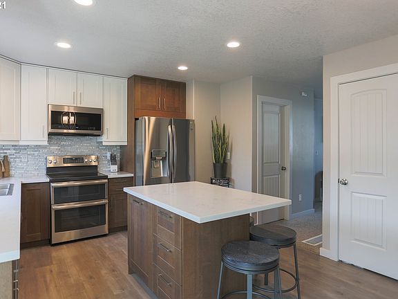 Beautiful, well maintained townhouse awaits you! This home features high ceilings, laminate flooring and a bright, open floorplan. SS fridge, range and dishwasher. Appliances are included, along with side by side washer and dryer. New carpet, floors and cabinets installed in 2019. Front balcony from living room, vaulted master with walk-in closet, laundry on upper floor, great sized deck and an oversized garage.