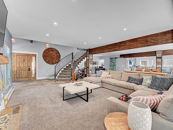 This home is centrally located and surrounded by majestic timber and flowing meadows, offering both privacy and seclusion while providing quick access to local shopping, schools, Denver, and ski resorts.