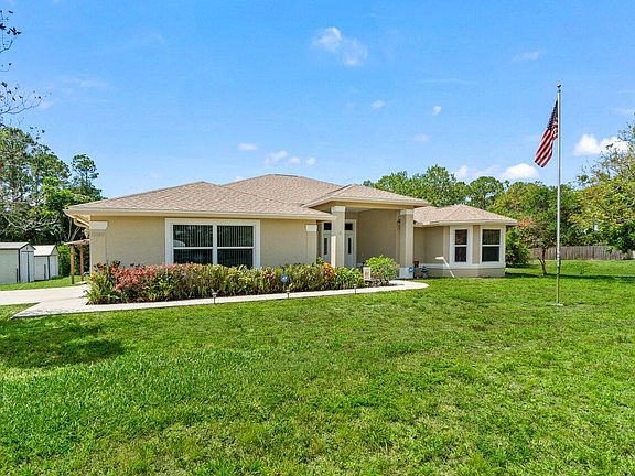 Meticulously maintained by original owner, this custom-built 4-bedroom home offers comfort, style, and peace of mind. Featuring impact-resistant windows and doors throughout ,with the exception of the front decorative door, and pedestrian garage door. A whole-house Generac generator, and a freshly painted exterior (2023), this home is built to last. The welcoming entrance boasts a newly painted front porch, while inside, the open-concept kitchen includes a bar that seats eight--perfect for entertaining. Enjoy seamless indoor-outdoor living with French doors and sliders leading to a spacious 600 sq. ft. patio. There are 2 sheds on the property, with power, and an oversized garage. With abundant closet space and a prime location close to paved 140th Avenue, this home is a rare find.