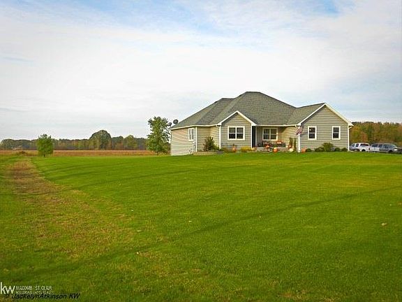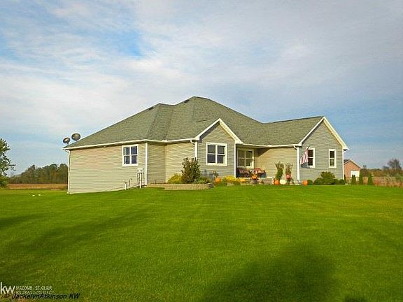 Beautiful Split Ranch home on over 2 acres in Armada School District. This home has money saving heat system with geothermal, radiant heat in basement and main level floor, and a foam block basement. No gas or propane bill! Staircase to partly finished basement is extra wide to carry those large items down and has daylight windows for a feel of a separate living quarters. Home was built with steel beams for main floor for extra support and wide open basement with no beams. Absolutely no expense spared on this home and nothing to do but move in. BTVAI