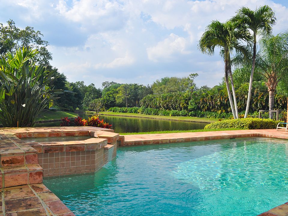 Tropical paradise surrounds this understated elegant 5BR, 6BA pristine home. 3'' wood plantation shutters adorn the windows. 10' solid wood doors throughout. Tile floors, custom wet bar, 3 car garage. The Master Suite features his and her Master Baths, Large walk in closets and additional space for an exercise area of her master bath. The kitchen has double built-in ovens, granite counter tops, 42'' wood cabinets and large island. Very private lot on cul-de-sac with long lake views.