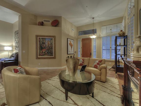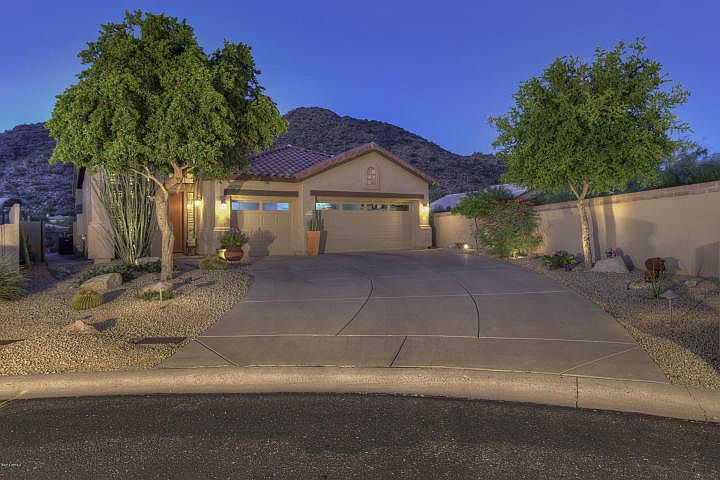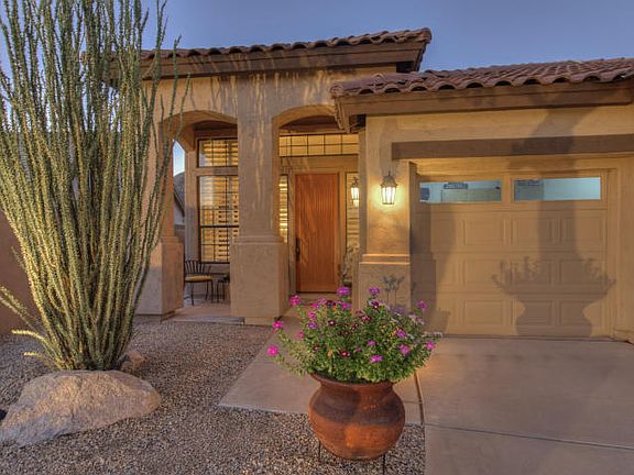 Located in the gated community of Scottsdale Mountain and nestled in the foothills of the McDowell Mountains with sweeping panoramic views, this spectacular home is situated at the end of a cul-de-sac for added privacy. Features include 3 BR plus den, 12' ceilings, plantation shutters and tile throughout. The remodeled, gourmet kitchen is nicely appointed with granite counters, stainless steel appliances, large island, pantry with pull out drawers and a stunning glass tile wall. The master suite offers a large travertine and glass block shower, dual sinks and a walk in closet. Whether relaxing on the covered patio, entertaining around the built-in BBQ or enjoying the breathtaking views from the elevated view patio, you will fall in love with the lush, desert oasis backyard.