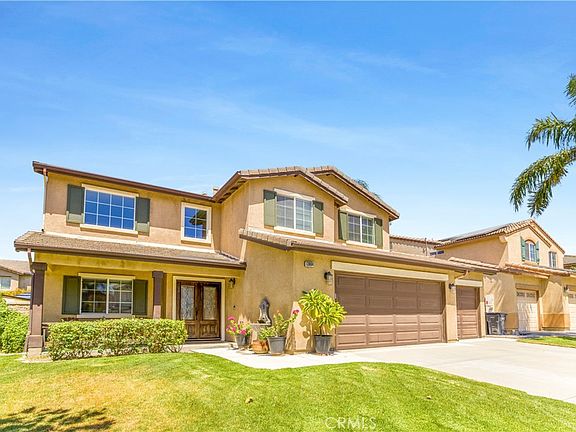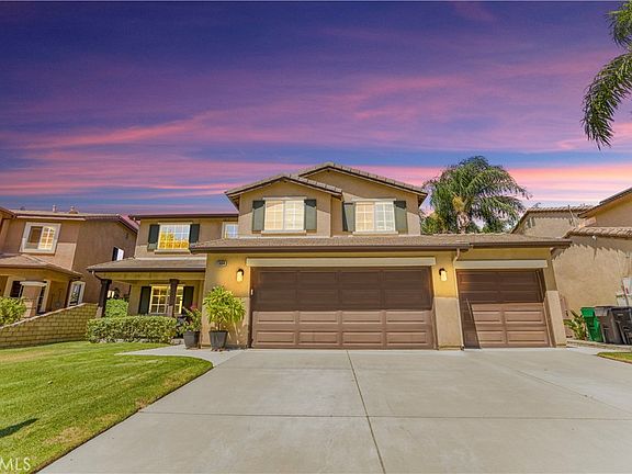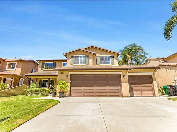 Welcome to your dream home in the amazing community of Eastvale. This exquisite home features 5 bedroom and 3 bathrooms, which includes a full bedroom and bathroom on the main floor for your home office or family. When you walk in you are greeted with cathedral ceilings and an amazing formal family room. Step into a chef's dream kitchen with built in cabinetry, walked in pantry and granite countertop along with an island great for entertaining. Downstairs, enjoy elegant floating bamboo and tile flooring at your feet. The family room is great for all your family gatherings. As you step out side to your well manicured backyard featuring covered and uncovered patios, built in island BBQ and ample seating great for entertaining. Upstairs, you will find an amazing loft for your game room or a separate place for relaxation. All bedrooms are great sizes, the primary bedroom offers walk-in his and her closets and his and hers sinks in the primary bathroom. This homes offers absolutely everything you need and look for in a home and has been well maintained and taken care of. Don't miss out in this opportunity and make this dream home yours today.