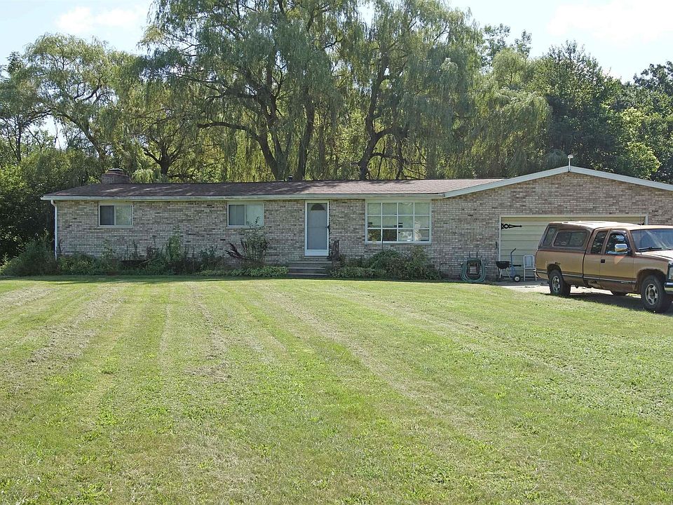 Great country location! 1975 manufactured house with brick exterior, attached 2 car garage on 3/4 acre. Full walk out basement with wood fireplace and bar.