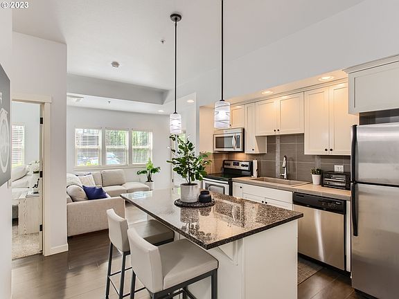 Condo is perfectly situated in the heart of Beaverton, walking distance to Nike, Cedar Hills Shopping, amenities, food carts, and more! Unit is lightly lived with modern finishes such as granite countertops, new bedroom carpet, double wide kitchen sink, stainless steel appliances, high ceilings, generous closets, patio, and a great HOA with pool, gym, and party room. In unit washer/dryer and deeded parking spot with plenty of visitor spots for guests. Modern style AC unit included in sale.
