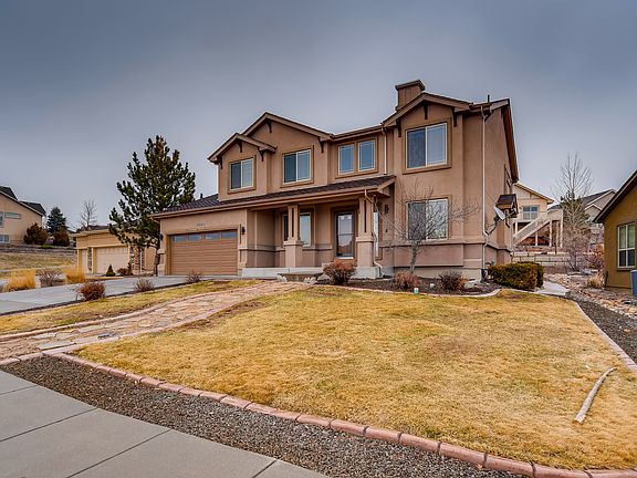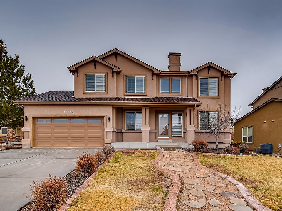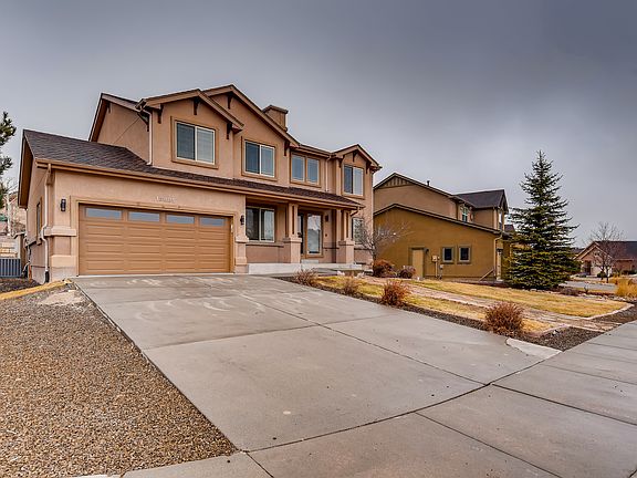 A spectacular 5 bedroom, 4 bathroom house located in the beautiful Flying Horse community! As you step inside this home you are greeted with soaring ceilings and hardwood floors in the foyer. You will love preparing meals in this gorgeous kitchen which features an oversized kitchen island with room for seating, steel appliances, dual ovens, granite countertops, and plenty of cabinet space! Upstairs you find the spacious primary bedroom which boasts an extra seating lounge, a three-sided fireplace, walk-in closets, and an en suite bathroom with two vanities and a garden tub. The backyard is equipped with a stamped concrete patio perfect for summertime barbecues, and the finished basement includes a wet bar perfect for entertaining. The location is ideal with quick access to I-25, Powers Corridor, dining, shopping, The Club at Flying Horse and so much more!