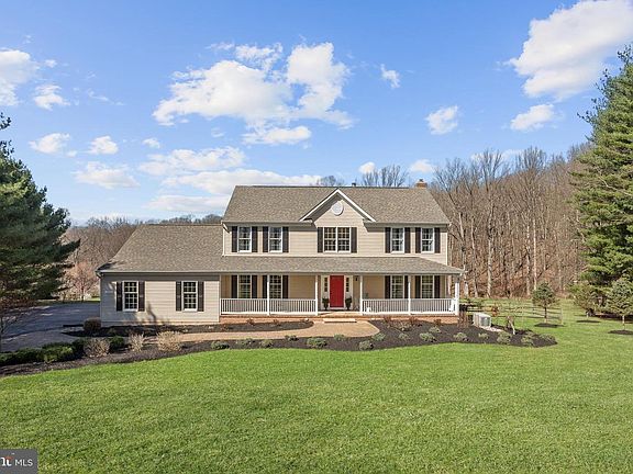 Stunning recently updated Colonial style home on 6 private acres boasting panoramic views, backing to woods, private pond, barn, lofty windows, gleaming hardwood floors throughout the main and upper levels, two-story foyer, and design-inspired features throughout! From the open floor plan to the spectacular outdoor living space, this gorgeous home hits the perfect balance of privacy and every entertainer's dream; Spacious formal living room; Dining room graced with crown molding and chair railing; Eat-in kitchen embellished with sleek stainless steel appliances, Granite countertops, island, breakfast bar, and ample cabinetry; Sunroom with soaring cathedral ceilings, lofty windows, and amazing backyard views; Sunken family room highlighted with a stone profile fireplace and easy access to the deck; Laundry room and powder room complete the main level; Primary bedroom with a large walk-in closet, luxurious full bath with dual vanities, soaking tub, water closet, and glass-enclosed shower; Three additional bedrooms and full bath conclude the upper level sleeping quarters; Expansive lower level recreation room, game room, additional kitchen, rough-in for a bathroom, atrium doors that lead you to the outdoor oasis, and garage access; This remarkable property aims to please and is truly the embodiment of Maryland's good life! Recent updates: Interior paint, main level floors refinished, granite countertops, deck stained, stainless steel appliances, oil tank, light fixtures replaced throughout, iron balusters for railings, house and walkways power washed, window treatments, plumbing fixtures, landscaping, and more! The exterior features an expansive private lot, panoramic views, backs to trees, 3 car garage + tractor garage, landscaped grounds, extensive hardscape, covered front porch, pond with Koi fish, barn with a chicken coop, water, and electric, patio, rear fence, variety of trees including Magnolia, Hibiscus, Cherry Blossom, Dogwood, Evergreens, and more! A MUST SEE!