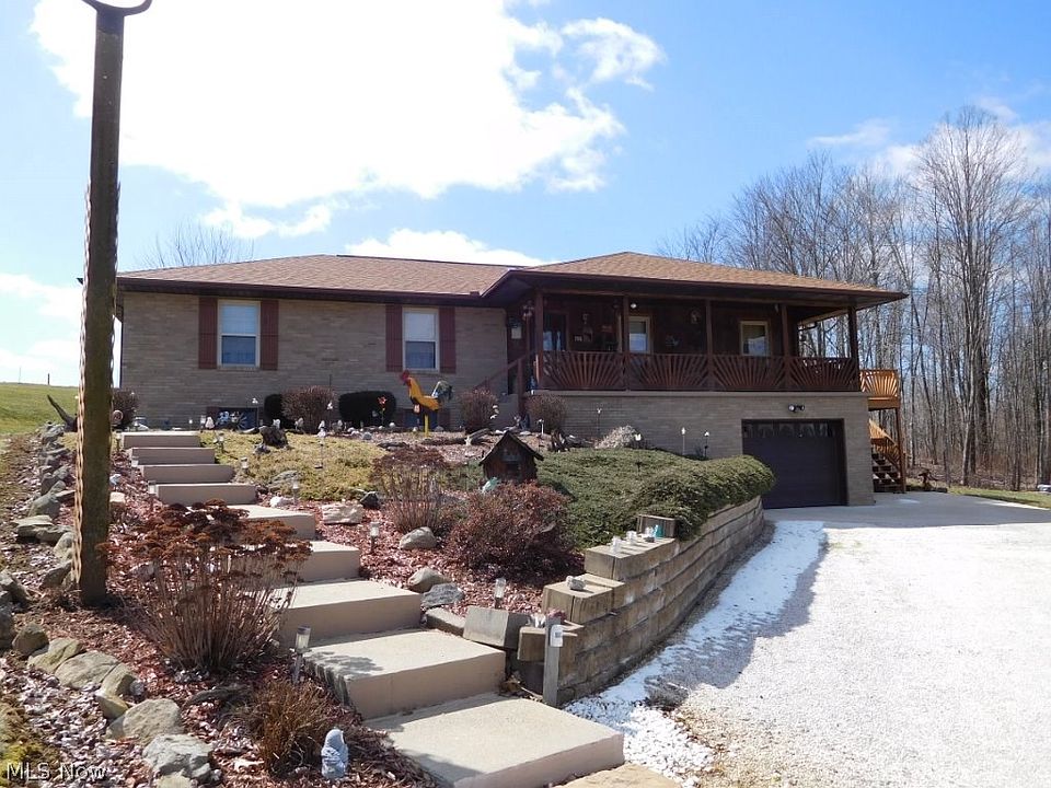 Beautifully maintained inside and out. One-owner home. Vaulted foyer and living room. Open dining and large kitchen area. Fully equipped kitchen. Dining area can access large private deck. Oversized bath. Large bedrooms with ample closets. Tilt-in windows 10 years old. LL family room, bath and laundry room. Extra large garage, storage room, wood burner. Roof 5 years old. New retaining wall under covered front porch New pressure tank. Deep basement. Fantastic detached garage and large storage shed. Just move in!