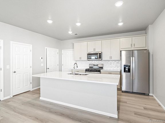 Discover the Woodland floorplan in the sought-after Via Varra community by Meritage Homes, offering a blend of modern design and functional living spaces. Enjoy jasmine white quartz countertops and a subway tile backsplash, paired with sleek pebble gray shaker style cabinets for a contemporary look. Located close to local amenities, parks, and top-rated schools, with easy access to Boulder and Denver.