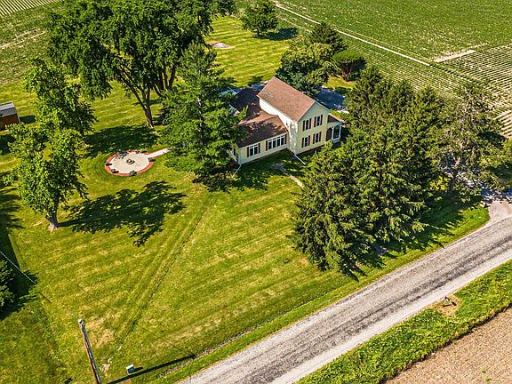Incredible 4 bedroom, 2 bath two-story farmhouse. Built in the late 1800s and totally renovated between 2012/2024, this home has it all. Walk in the front door to a cozy living room with an electric fireplace, built-in oak shelves and entertainment center. The LR opens to an enormous and welcoming dining room. Hand-crafted dining room table from barnwood that was previously on the property to remain at closing. Another electric fireplace gives the space an incredibly welcoming vibe! The large kitchen is equipped with Amish made, quarter sawn oak cabinets, quartz countertops (2021), tile backsplash (2022), and a large pantry with sliding barn doors. All appliances stay, including the upright freezer. Also on the main floor is the master bedroom with a walk-in custom-built closet, and newly remodeled master-bathroom. The second main floor bathroom was remodeled in 2023. The main floor is also complete with laundry room located outside the master bedroom. 2 additional bedrooms are located on the second floor. Every room on the main floor has a basement room underneath it! Take the stairs to a fully finished cozy family room with pine and stone walls, with stunning built-in shelves. Very rustic looking! Head down the hall to a small office and ample storage. Outside you will find a stunning front porch (2017) with trex deck boards. Out the back door you will find a 20x20’ deck. Off the deck is a walkway to a concrete patio with built-in firepit. Plenty of room to Grow!
