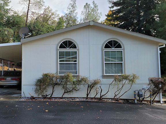 Location! Location, This 2 bdrm, 2 full baths well maint. home has vaulted ceilings & fans throughout. The living room, dining and kitchen have an open floor plan w/ hardwood floors. Spacious kitchen, cabinets galore, Indoor laundry w/Tons of storage. Main bath is a jack n Jill w/tub, connected to the main hall and the laundry room, near the back door. Lrg Master suite with private bthrm, double sinks, & newly remodeled shower, Mstr. bath has its own linen closet! This wonderful space in the back of the park is private, having a wonderful yard w/auto sprinkler syst., low maint. landscaping, great trees out front, stamped cement patio in the back. Rear carport awning spans the entire length of the home, Large Tuff Shed. Newer heating and A/C, Hot wtr htr, aprox 5yrs old and new microwave