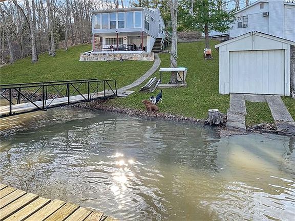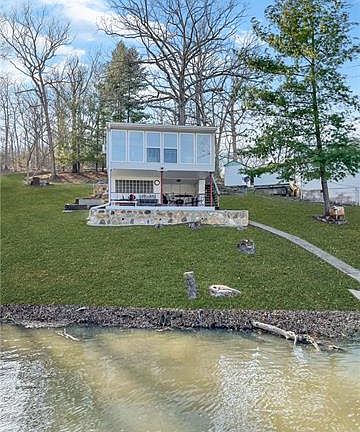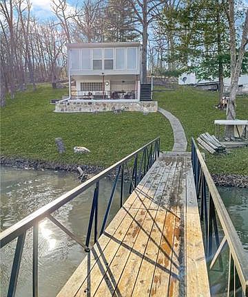 This lakefront property located at the 71 MM has it all for the perfect weekend getaway! Entertaining is easy with a quiet cove location and a covered patio. With nothing but windows on the front of this 2 bedroom, 1 bath home it gives it a much larger feel with an amazing view of the lake. 75 feet of lake front and a 2 well dock for all your water toys. This fully furnished home is turn key... so grab your sunglasses, friends and family, and get ready to enjoy the lake life!