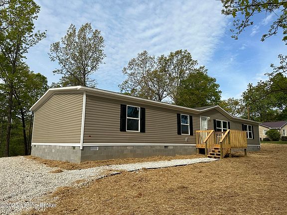 Brand new 4 bed 2 bath home on 1.2 acres in Brandenburg! Home boasts over 1900 sq ft of living space, 2 living rooms, kitchen island, walk in closets and stylish laminate flooring throughout for easy maintenance! There is a 1 year manufacturers warranty in place for peace of mind! Less than 2 miles from Nucor and 1 mile from Brandenburg Bypass. Location is outside of city limits while maintaining easy access to I65, I64, Fort Knox, Elizabethtown and Louisville. Home easily qualifies for VA and FHA. New Doublewides also qualify for USDA/Rural Housing loans.