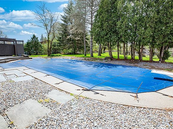 Oversized 4 bedroom, 2 and a half bath home in a wonderful Skaneateles neighborhood, just outside the village w/ public water. This spacious home offers an open Great room / home office area w/ fireplace and hardwoods, Cathedral ceilings and tons of windows and light. The open concept flows into the kitchen, dining room and first floor rec room with sliders to a patio and in-ground pool area. The second floor features 4 large bedrooms, including a primary suite w/ jetted tub and double shower, double vanity, and river stone tiling. This level also boasts a full hall bath. The very workable floor plan also includes a mudroom / laundry room off the attached 2 car garage, entry foyer and half bath. This corner lot features a great yard in which to spread out, in-ground pool (needs new liner), plus circular drive and parking area. This lovely home has much potential (newer roof and interior / exterior recently painted), but does require some updates / projects finished. Delayed showings until noon on Friday, May 5th.