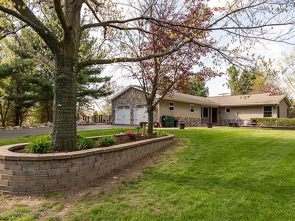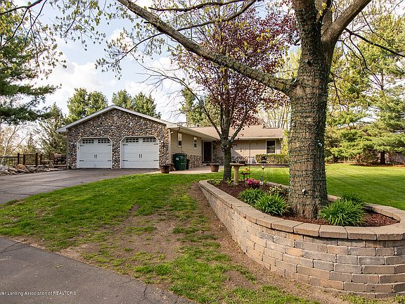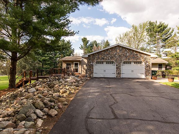 Spacious Ranch Home overlooking a pond. Beautifully landscaped on 2 country acres! Paver walk and paver stone patio, new composite deck, fire pit, and regulation size basketball court. Sunken Living Room with oak floor and wide oak trim. Dining Room with oak floor and built-in oak desk. Oak Kitchen with ceramic floor, granite countertops and large pantry cabinet. LL Family Room with gas FP, neutral carpeting. 4 Season Room with a beamed ceiling and gas stove. 2 Master Bedrooms with private baths. 2 car attached Garage with electric door open and pull down steps to the attic.
