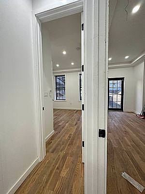 NO FEE!! Brand New Luxury 4 Bed DUPLEX + PRIVATE BACKYARD!! 2 Full Baths PRIME BUSHWICK! Luxury building! Unit features split heating and cooling, Enjoy designer finishes, In-Unit WASHER/Dryer, SMART home features, Open views, timeless finishes, High ceiling, Dishwasher, intercom system, marble kitchen , 2 bathtubs, + half a bath , Duplex, easy access to laundry, and much more !! This is your opportunity to live in a BRAND NEW LUXURY BUILDING with Manhattan skyline views and High End Finishes!!. A unique new building offering rooftop access, Laundry room, backyard access, security camera systems, safe delivery drop off! Come join one of Brooklyns most hottest areas with Gorgeous Parks nearby Only Steps away to the L & M train , close to parks,Bars,groceries, & shopping. Guarantors or welcome ! Schedule now to view!