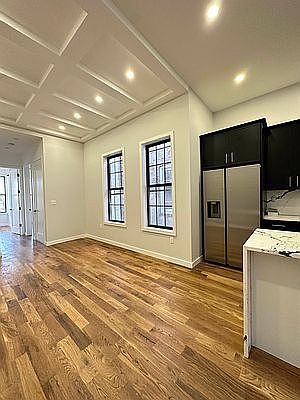 NO FEE!! Brand New Luxury 4 Bed DUPLEX + PRIVATE BACKYARD!! 2 Full Baths PRIME BUSHWICK! Luxury building! Unit features split heating and cooling, Enjoy designer finishes, In-Unit WASHER/Dryer, SMART home features, Open views, timeless finishes, High ceiling, Dishwasher, intercom system, marble kitchen , 2 bathtubs, + half a bath , Duplex, easy access to laundry, and much more !! This is your opportunity to live in a BRAND NEW LUXURY BUILDING with Manhattan skyline views and High End Finishes!!. A unique new building offering rooftop access, Laundry room, backyard access, security camera systems, safe delivery drop off! Come join one of Brooklyns most hottest areas with Gorgeous Parks nearby Only Steps away to the L & M train , close to parks,Bars,groceries, & shopping. Guarantors or welcome ! Schedule now to view!