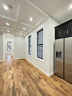NO FEE!! BRAND NEW Luxury 3 Bedroom / 2 Full baths + Huge PRIVATE Balcony ! PRIME Bushwick! Unit features Designer European marble kitchen with island, IN-UNIT WASHER/DRYER, stainless steel appliances, DISHWASHER , Direct access to PRIVATE Backyard! lots of closet space, Huge bedrooms, State of the art finishes, Central split heating and cooling, Open air light views, deep marble bathroom bathtubs, SMART home features , hardwood oak flooring, great living dining space, and much more !!. Bushwick is a neighborhood known for its vibrant arts and cultural scene, eclectic mix of architecture, and diverse community. This once-industrial neighborhood has undergone a transformation in recent years, with a thriving community of artists, musicians, and young professionals calling it home. Bushwick is home to a vibrant street art scene, with colorful murals and street art adorning the walls of buildings throughout the neighborhood. The area also boasts a variety of dining options ranging from trendy gastropubs to authentic ethnic cuisine. Bushwick is well-connected to the rest of New York City big apple, with several subway lines offering easy access to other parts of the city. Whether you're looking for a trendy nightlife scene, vibrant arts and cultural events, or a tight-knit community, Bushwick has something to offer everyone. Come experience the unique energy and vitality of this dynamic Brooklyn neighborhood. Secure package drop off, security camera systems, and more! Only Steps away to the L & M train , close to gorgeous parks! Guarantors or welcome ! Pet friendly ! Schedule now to view!