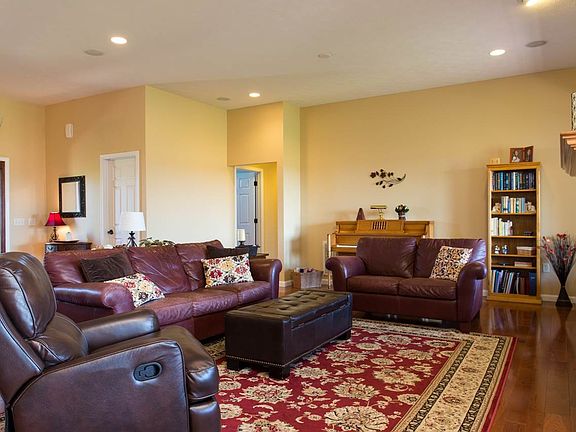 Beautiful mountain and pastoral views from almost every room in this open concept ranch. Home features: hardwood floors and tile throughout; granite counters, stainless appliances (french door refrigerator, double ovens), custom built cabinetry and eat-in area in the kitchen; fabulous covered porch (10 x 40) with trex decking; 2 x 6 construction; luxurious master suite with trey ceiling, large master bath with jetted tub, his and hers vanities, granatrex counters and two walk-in closets. Office or study next to master. Great size laundry room. Two additional bedrooms on first floor with another bedroom, bath and home theater in basement. Land is level and partially fenced.