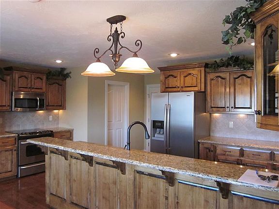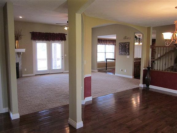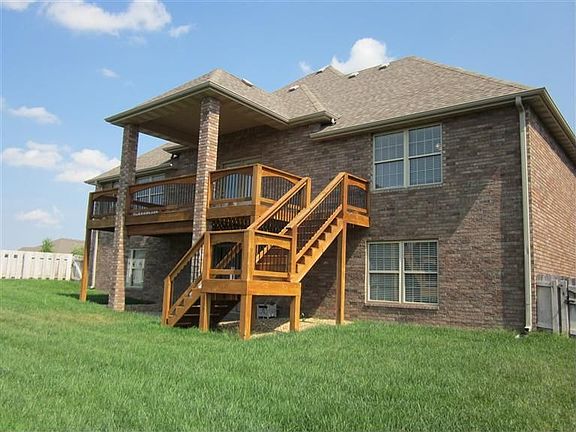 Beautiful custom built one-owner home in one of Springfield's nicest communities! This all brick home with stone accents is located at the Lakes at Wild Horse on East Divison, just minutes from Hwy 65 and offering a front row view of the new Hickory Hills School. It features 3 levels of spacious living including an open floor plan, 5 bedrooms, 3.5 baths, a formal dining room, and 2 large living areas. A central vacuum, large west-facing covered deck, granite counter tops and a large peninsula in the kitchen, a wet bar, two built-in fireplaces and the conveniences of a doggy door makes this home perfect for family living. The master suite is separate from the other four bedrooms and offers tres ceilings while the master bathroom has two sinks situated on a large vanity, a jetted tub, walk-in shower, and a spacious walk-in closet. The walkout basement includes 2 bedrooms, a 3rd full bath, large living area, wet bar and a large mechanical room for storage and shelter.
