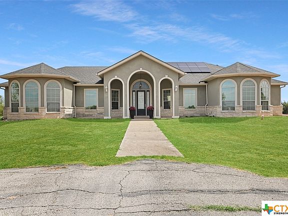 Are you looking for a home with a little room? A couple of acres? A country view? Do you want to see the stars at night? Here you go...4 bedroom, 2/5 bath home, over 2800 sq ft, built in 2006 in Marion (Marion ISD) on 2.17 AC, no HOA, fully fenced with electric drive through gate. Walk into this beautiful home to a great entryway that leads to an oversized living room with crown molding and custom built-ins, to the left of the entryway is the home office, to the right is the formal dining room. The kitchen is secluded from the living room with beautiful custom wood cabinetry, double wall ovens, electric cooktop and dishwasher, granite tile countertops and tile backsplash with decorative tile inlays, oversized pantry. The master bedroom suite is separate from the other 3 additional bedrooms, large bathroom with garden tub, large walk in shower, huge double vanity and large walk in closet. On the other side of the house are 3 additional bedrooms, guest bath and laundry room. The garage is HUGE with extra storage and room for a garage workshop area, there is even an extra 1/2 bath and access to the back yard. Enjoy your evenings on the back patio with afternoon shade and a great view of...nothing! No direct back yard homes, just the countryside! Sprinkler system to the trees, fully fenced. Solar panels owned and installed in 2021. Foundation work done by Olshan in 2021 with transferable warranty.