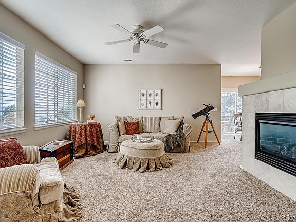 Don't miss this rare opportunity to own a 2bed/2bath (+ den) patio home on a golf course with a GORGEOUS view of Pike's Peak! Enjoy PICTURESQUE dramatic mountain vistas from your southwest-facing deck and STORY-BOOK scenery from the front door. This peaceful property is located between Daniels Park and The Ridge golf course. All this and a south facing driveway! The townhome offers open-concept kitchen/dining/living areas for entertaining, a large master bedroom, and a good-sized secondary bedroom for guests or family. Move right in with a neutral décor and ceiling fans throughout! The home office could easily be converted to a third bedroom. The home offers a large master and 5 piece bath, open study and guest bedroom/bathroom. The kitchen with island sink is bright with a large pantry and over looks an open dining area and south deck, pine tree views; An over-sized 2-car garage with a wide drive way off the cul-de-sac and superior interior closet space, provide plenty of storage for all your belongings and outdoor gear. Ample cabinets and a large pantry are found in the kitchen. Finally, the large laundry room provides plenty of additional storage space. BRAND NEW ROOF! Enjoy a low maintenance, peaceful, active lifestyle living experience, with easy access to Park Meadows Mall, shops in Castle Pines and the Castle Rock Outlet Mall, and RTD Light Rail to downtown Denver. Relax among nature from your deck, or from beautiful parks nearby: Daniels Park, Cherokee Ranch, and Hess Reservoir.