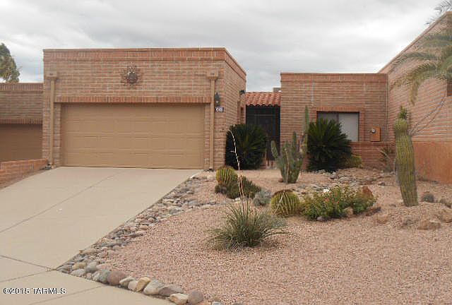 This townhome is beautifully situated on a home site that brings the Santa Rita Mountains to the rear outdoor living center. This home also overlooks a golf course (currently closed) The owners suite affords a private, updated, bath, a spacious walk-in closet and direct access to your own private outdoor living center. The guest bedroom, or home office, is very spacious and front facing. The living room features a kiva fireplace and views through the porch and on to the South. The kitchen is bright with new cabinets,island,quartz countertops and appliances in place. 18 x18 inch neutral tile floors throughout, installed in 2019. Pictures are not current. The garage is oversized and boasts of built-in cabinets. The front courtyard offers a second outdoor area.