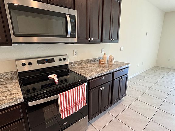 Beautiful and confortable 3-bedroom, 2.5-bathroom townhome, offers 1,720 sq. ft. living space, perfect for modern comfort and style. Located in the excellent Gated Atria at Ridgewood Lakes community, this home features an open-concept kitchen with stainless steel appliances and a central island, ideal for entertaining. The spacious living area seamlessly connects to a covered lanai through a three-panel sliding door, allowing you to relax. The community offers great locations you'll be just minutes away from shopping, dining, and world-famous Orlando attractions! Don't miss the chance to call this luxurious retreat your home.
