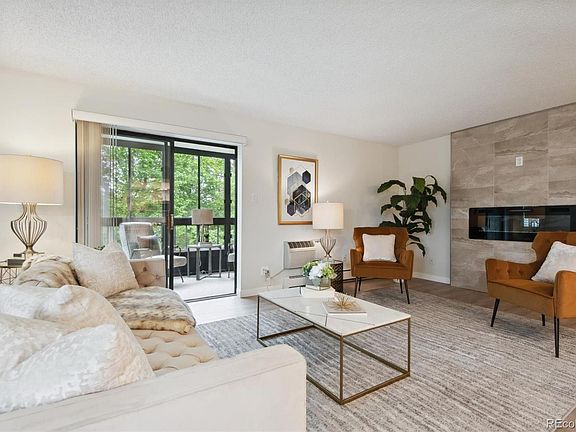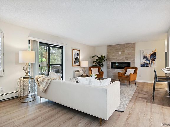 Main floor residence but is elevated a full floor above grade so lives like a second floor residence and overlooks a greenbelt with majestic pine trees. Just remodeled from top to bottom. This is one of the nicest homes available in Heather Gardens, Aurora's premier 55+ community. 2 bedrooms plus 2 baths, spacious glass enclosed lanai for multi-season use and 1 underground parking space with direct elevator access to the main floor. Large open great room with contemporary linear fireplace and windows on two sides filling this space with sunlight, separate dining room plus open kitchen with eating bar. LVP, wood look flooring throughout the living areas. New soft close cabinetry in the kitchen along with quartz counters and stainless appliances. New baths with new fixtures, tile, cabinets and counters. New paint throughout. New carpet. New hardware and lighting. In-unit laundry. Enjoy this beautifully re-designed home surrounded by amazing amenities including your own private swimming pool and tennis courts in the Seville community plus the Heather Gardens amenities including a multi-million dollar clubhouse, executive 9-hole golf course, indoor and outdoor swimming pools, fitness center, tennis courts and countless community activities. Live a great retirement lifestyle at Heather Gardens!