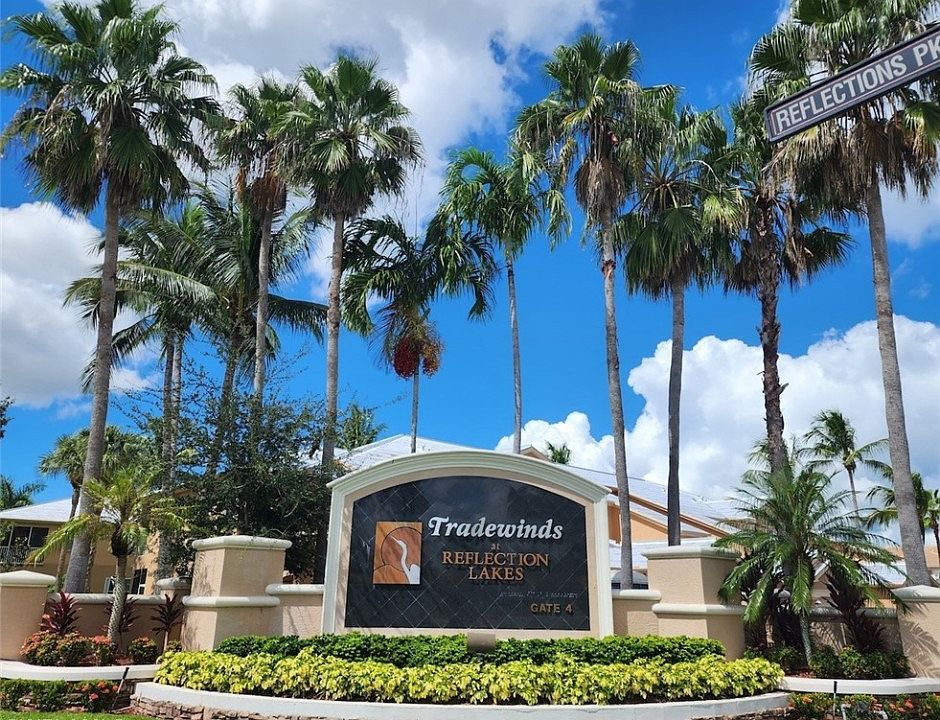 Don’t miss out on your chance to reside in the highly sought after Reflection Lakes Community! This 3 bedroom/2 bathroom with 1 car garage is has been well maintained. Enjoy this spacious end corner unit in addition to high ceilings and lots of natural light perfect for entertaining. Brand new roof. Reflection Lakes is centrally and desirably located to everything you need and want including shopping, dining, the airport, beaches and even performing arts center. Relax in the best of everything Florida has to offer or enjoy the best of the Reflection Lakes amenities including two clubhouses, pickle ball and tennis courts, resort style pools, fitness center, playground, shuffleboard, and more!