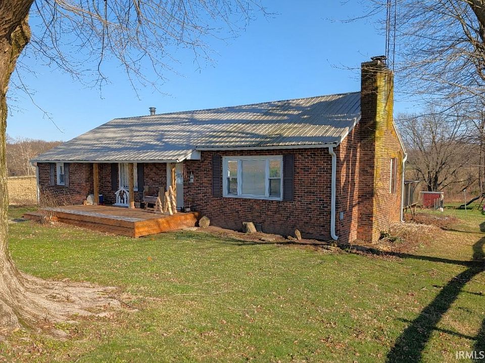 MOVE-IN READY COUNTRY HOME in rural Odon. Many recent updates including a completely renovated bathroom with tiled shower and soaking tub. Hardwood floors throughout and under carpet. Home sits on 1.65 acres, well water, and new septic in 2014. It has a metal roof with recently blown-in insulation in the attic. A newer deck was added to this 2-3 bedroom home. Enclosed back porch/utility room could be used as a 3rd bedroom, office or playroom. All appliances stay including new dishwasher. Unique updates also include a sliding barn door and matching doors wooden doors and shoe shelf. Large living room w/fireplace has matching indoor shutters to give privacy and create darkened room for watching TV. Great country location close to Odon and to I-69, Bloomington or Washington. Great for Crane workers, starter home or downsize. Outbuilding has electricity. Above-ground pool and shed stay. Newer brown shed is negotiable. In the large backyard is an open deck and concrete patio. Property includes all 3 parcels.
