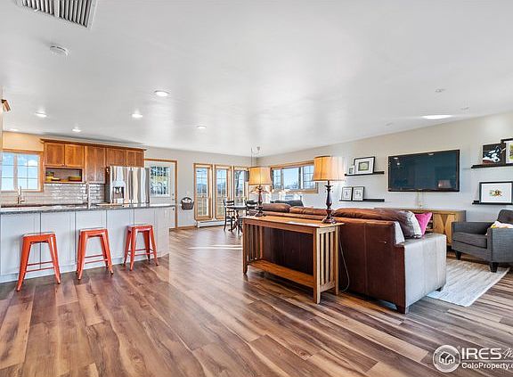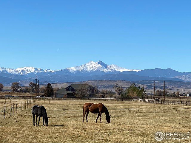 Exceptional Unincorporated Boulder County ranch with spectacular views of the entire front range. 2 separate living areas: kitchens, living, office/school spaces, and 2 entrances make this an ideal home business, AirBnB, retreat space, or multigen home. 14+ acres fenced and cross fenced w/ lush green pastures Mar- Sep. irrigation hydrants and Nelson automatic waterers in pastures. 2 large barns, 3 small animal barns, run in sheds, hay/ equipment barn. Adjoins Boulder County open space on two sides. Huge fenced in organic garden. 4 car garage+workshop. 8kw, ownedTesla solar panels. Kitchen and family room updated 2020, roof and exterior paint 2019, Interior paint 2020. Beautiful property and meticulously maintained. Sellers invite you to drive down the lane to see the views.