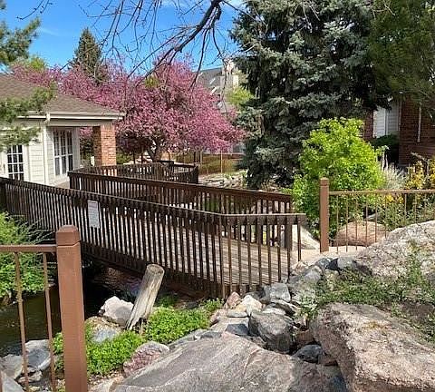 Charming 2 bedroom 1 bathroom penthouse condo in desirable Meadow Hills with views of the pond and waterfall. Just steps from the pool and right across from Cherry Creek Reservoir and all the activities it has to offer. New carpet in the master and flooring throughout the rest of the unit. The second room can either be used as an office, bedroom or sitting room with French doors and a closet. All appliances are newer. New Furnace, new water heater. Lots of storage in the crawl space and additional storage outside off the deck. Plenty of open parking near unit. Location convenient to light rail, bike trails, the highway and a short distance to DTC and downtown. The perfect place for an active lifestyle.
