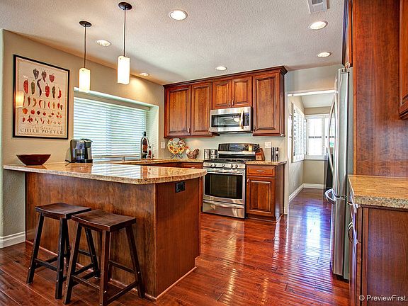 Must see this gorgeous home located on Cul de Sac in highly sought after Poway neighborhood. Superbly maintained w/upgrades throughout. Kitchen has custom cabinets, SS appliances, glass backsplash & granite counters. Backyard is entertainers delight, complete with detached covered patio, TV, BBQ area, pool & fire-pit. Upstairs Master suite boasts his & her closets, dual vanities & deck overlooking yard. 3 car garage & RV parking. Excellent Poway Schools. Close to all amenities!