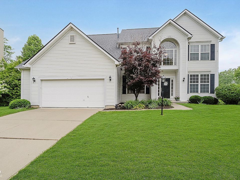 Discover this beautiful 4-bedroom move-in ready home in the popular Haverstick neighborhood with a large open backyard that backs to a serene tree-lined area and offers direct access to a trail leading to neighborhood amenities including a pool, tennis/pickleball court, and playground. Enjoy the enclosed sunroom with heated tile floors and scenic views. Inside, high ceilings and a 2-story family room with a cozy fireplace and lots of windows with plantation shutters fill the space with natural light. Main floor features a formal dining room, living/flex room, a private office with French doors, and a spacious kitchen with a center island with seating, planning desk, breakfast area and sunroom access. The luxurious primary suite includes vaulted ceilings, room for a sitting area, spa-like bath with double sinks, a huge walk-in closet, and bonus closet-perfect for a his-and-her setup. The finished basement includes a wet bar, half bath, newer carpet and fresh paint. Yard includes a full irrigation system. Close to shops, dining, parks, golf & more! Roof 2020, Furnace 2018, Water Heater 2021, matching stainless steel appliances and Washer/Dryer 2021. Located in top-rated Carmel Clay School District. A perfect blend of space, comfort, and location!
