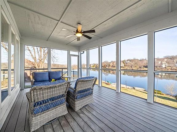 Dreaming of walking out your backdoor to hop on your kayak or paddle board and watching the sunrise, the sunset? Dreaming of fishing whenever you want with the ease of simply walking out your back door? Dreaming of the serenity of looking out your windows or sitting on your screened deck to see one of nature's most lovely views - water and trees? Dreaming all this is yours without enormous HOA fees and is located within close proximity to all the restaurants, services and shops you could need? Turn your dreams into your realities in this custom-built, lakeside reverse plan in Shawnee's hidden gem! You'll own one of the very few lake front homes in this neighborhood that also boasts multiple pools, sports courts and playgrounds, and you'll have one of the even fewer personal lakeside concrete patios/launch pad. A welcoming entry provides your first awe-inspiring views via floor-to-ceiling windows in the stately great room. Spectacular views continue through the heart of this home, a combined hearth room, kitchen and breakfast nook surrounded with beautiful built-in's, a cozy brick gas-log fireplace and an entry to your comfortable screened-in composite deck. A wall of full windows in the main floor primary suite takes advantage of the stunning views too - imagine the peaceful beginning you'll enjoy each day waking to your water views! A unique and private main floor office doesn't miss out on the view either! Two additional bedrooms on walkout level both provide same tranquil views and each has ensuite bathroom and spacious walk-in closet. Finished lower level includes second living room that embraces the phenomenal views! A wide open layout w/wet bar adds to comfort here. You'll have fabulous storage space, incl utility sink and side exterior door, a perfect set up for storing your lake toys, fishing equipment! Home has been very well maintained, yet decor and finishes reflects is age. Make this one-of-kind custom home on this extraordinarily rare homesite your own.