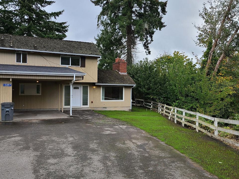 Live in a beautiful Kitsap countryside setting - just minutes from Silverdale, Keyport/Bangor, Rt 3. Move-in ready now! Large living room with sliding glass doors for maximum natural light; cathedral ceilings; Kitchen nook with built-in European style seating plus full dining area. 3 bedrooms 1.5 baths (1 full upstairs .5 downstairs) updated throughout with all newer carpet, fixtures, lighting fixtures; newer stove and refrigerator; fresh paint; laundry room (washer and dryer NOT included); carport for one, plus plenty additional off-street parking; small outside storage shed large side yard. Duplex sits on small acreage. Smoke free. No pets. Make Appointments for viewing. Rent $1500 per month plus $80 for garbage and sewer/septic, total $1580 per month. First and last month's rent due at lease signing PLUS $550 security/damage deposit. All applications through Zillow.