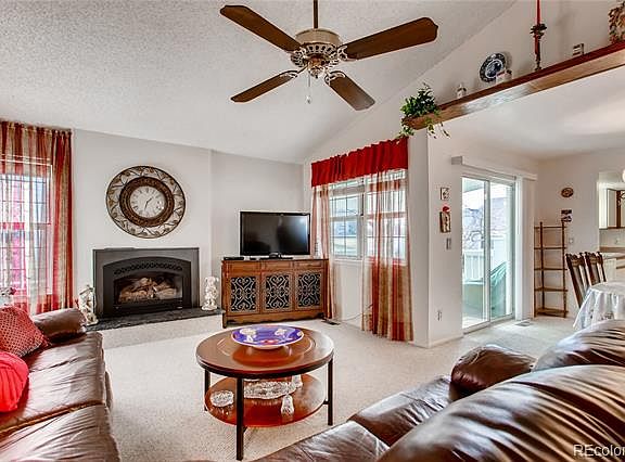 Fantastic patio home on the 3rd fairway! Enjoy morning coffee or evening cocktails on your covered patio looking out onto the golf course! Well maintained, light and bright home features family room with vaulted ceiling and newer high efficiency gas fireplace. Open concept, leads into dining area, breakfast bar and kitchen. Tons of storage,both under stairs and a large basement storage area complete with rods for off-season clothing storage! Basement has large bedroom and good sized rec/family room with a cozy nook! Cluster mailbox and extra parking next to home. Brand new hot water heater! Come enjoy the Heather Gardens lifestyle with a 9-hole golf course, tennis courts, fitness center, activities, clubs, indoor & outdoor pools, billiards & more! Conveniently located close to 225 and Light Rail.